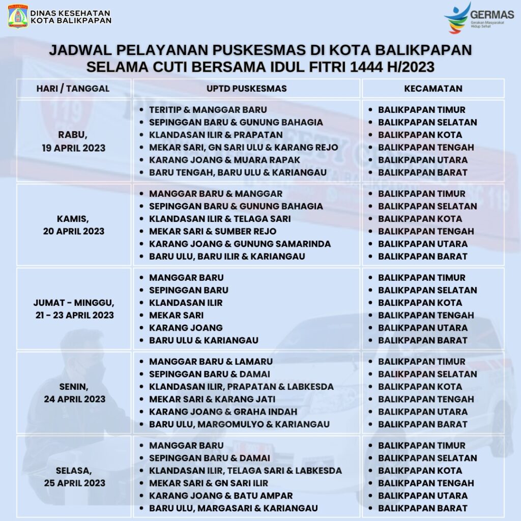 BALIKPAPAN,Inibalikpapan. com – Selama libur Idul Fitri 1444 Hijriah atau 2023 Masehi, Dinas Kesehatab Kota Balikpapan tetap akan membuka layanan kesehatan di 7 puskesmas 24 jam.