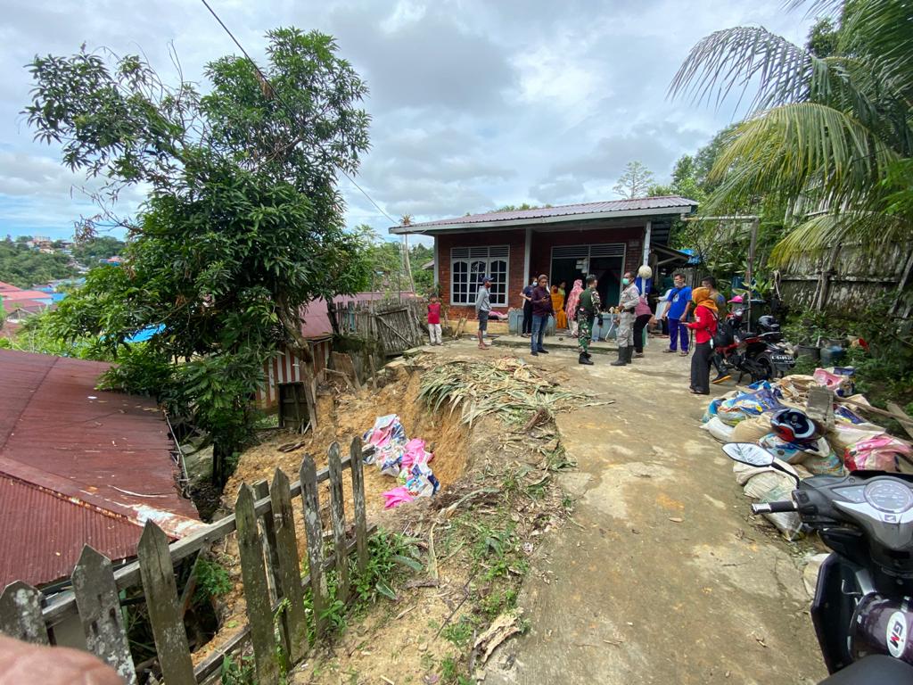 “Jam setengah enam saya bangun, saya bangunin cucu saya, tahu-tahu sudah longsor. Jam 7 pagi lapor dengan Pak RT, mohon maaf Pak RT saya ada dapat musibah, rumah saya longsor tanahnya kebawah,”
