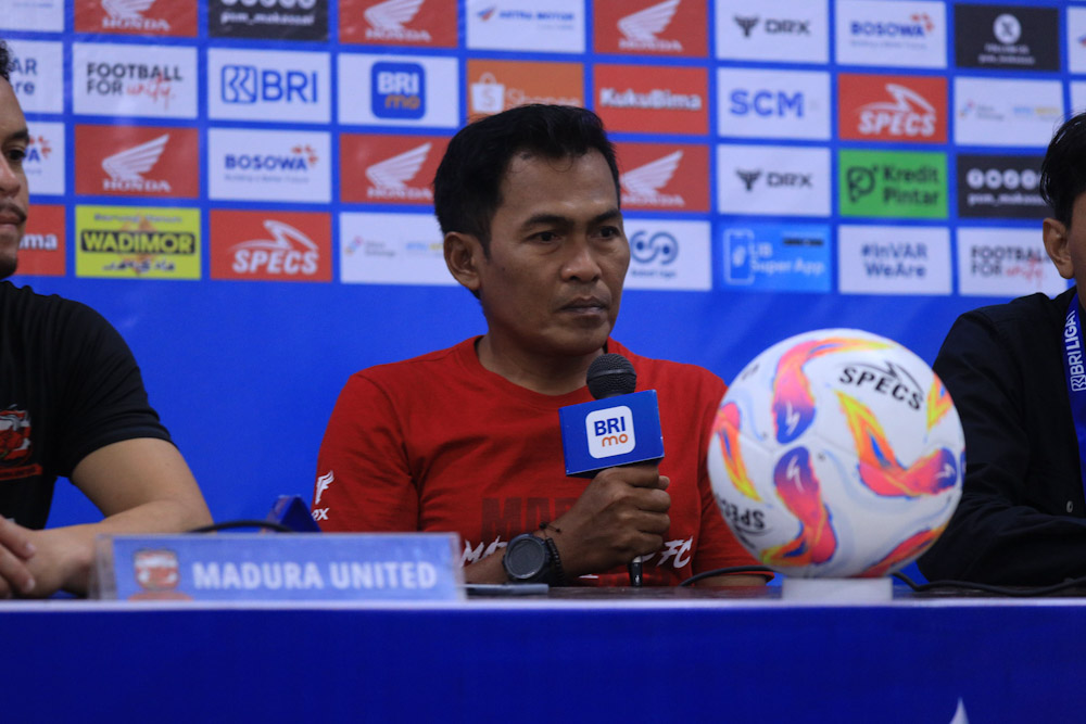 Rakhmat Basuki hadir konfrensi pers, mewakili Pelatih baru Madura United Paulo Meneses yang masig dalam proses pengesahan oleh PT Liga Indonesia Baru (LIB) selaku operator kompetisi.