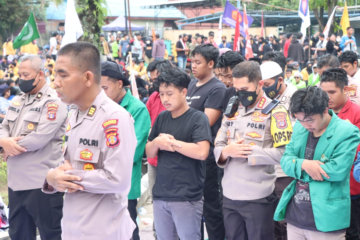 Mahasiswa dan Kapolresta Samarinda Salat di Tengah Demo di Depan Kantor DPRD Kaltim