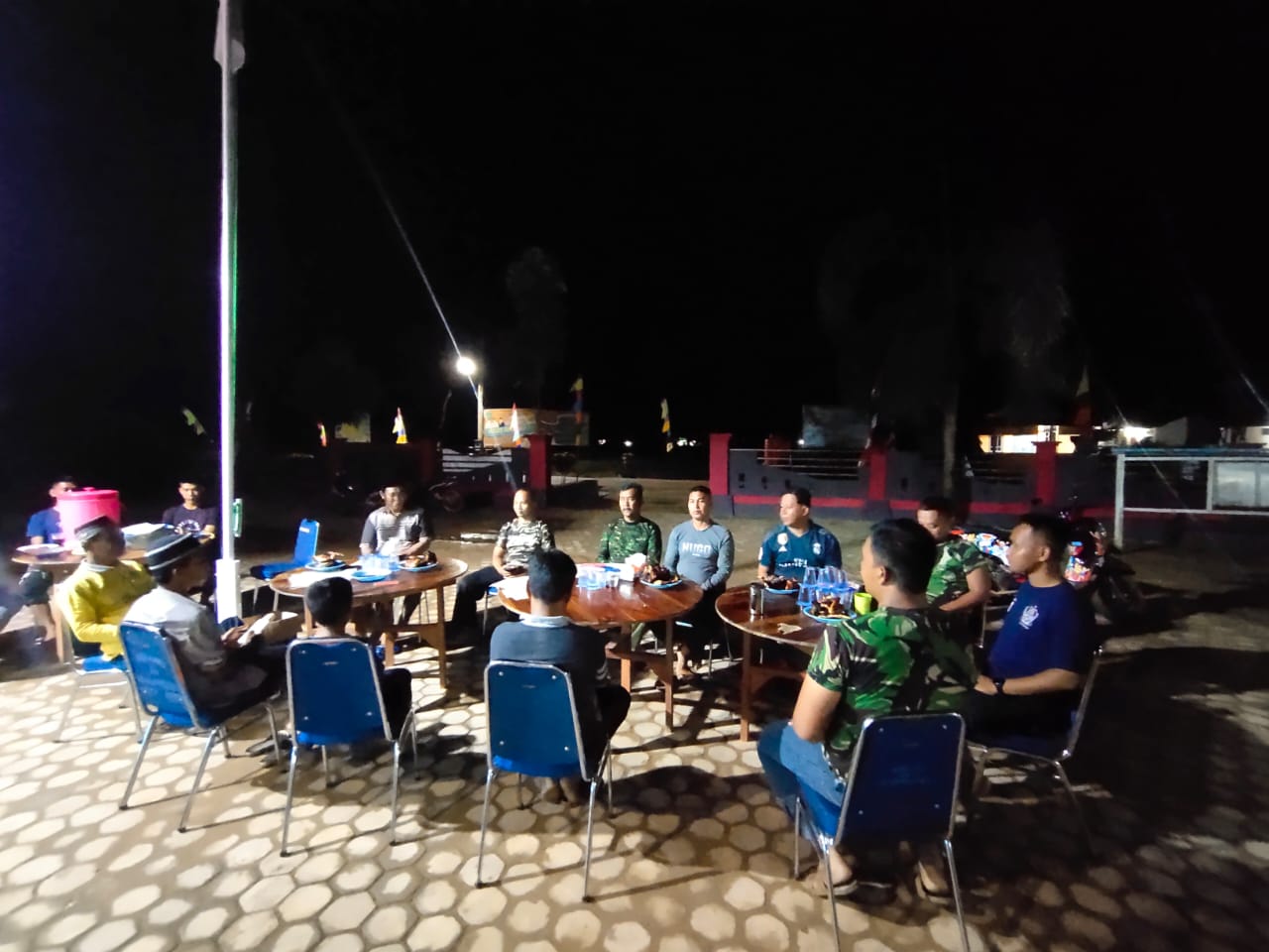TANAH BUMBU, Inibalikpapan.com – Personil Satgas TMMD Kodim 1022/Tnb bersama warga desa TMMD di desa makan malam bersama dihalaaman kantor desa Sumber Makmur Kecamatan Satui, Sabtu malam (17/10/2020)
