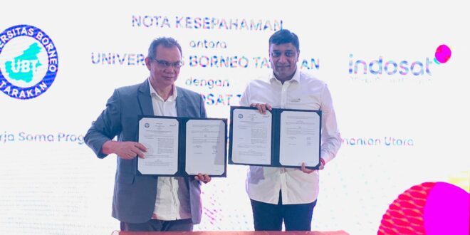 Penandatanganan kerjasama ini dilaksanakan di Aula Universitas Borneo Tarakan, Kaltara yang dilakukan President Director and CEO Indosat Ooredoo Hutchison Vikram Sinha bersama Wakil Rektor III UBT, Djaya Bakri, disaksikan Head of Asia Pasific Global System Mobile Communications Association (GSMA) Julain Gorman, Kepala Diskominfo Kaltara mewakili Gubernur Kaltara, Sekda Tarakan mewakili wali kota Tarakan dan undangan, di Aula Kampus Universitas Borneo Tarakan, Senin (22/5/2023).