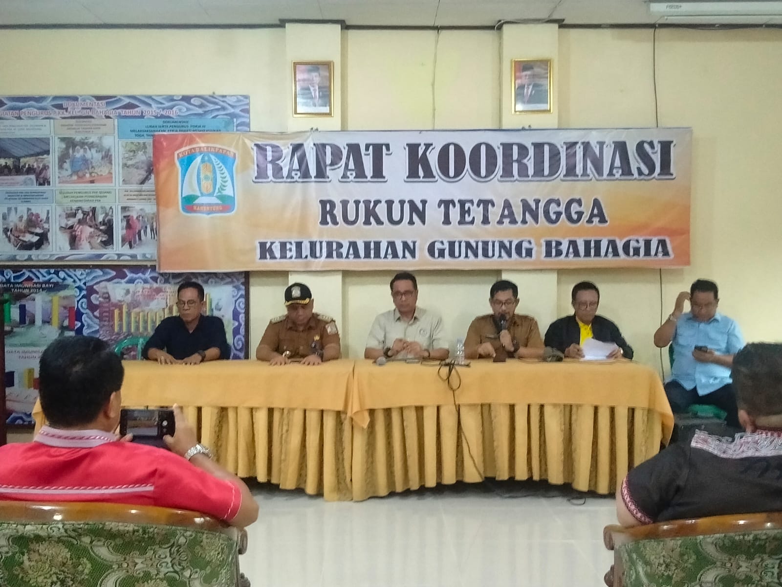 Rombongan dipimpin Wakil Ketua DPRD Sabaruddin Panrecale, diikuti Fadlianoor, H. Kamaruddin. mereka didampingi Kepala UPT Drainase PU Rahmat, Camat Selatan Abdul Hakim lurah Gunung Bahagia serta pihak pengembang GPA Lumban Gaul, Daun Vilage, pihak RT serta beberapa warga. Mereka tiba sekitar pukul 16.15 wita. Dari situ digelar pertemuan di kantor kelurahan Gunung Bahagia.