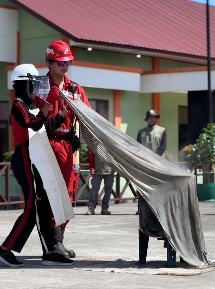 Para guru dan murid di SMP 25 dan SD 004 Balikpapan Barat Kelurahan Baru Tengah dan Margasari mendapat pelatihan pemadaman api skala kecil dan sosialisasi Masyarakat Jaga Kilang (MASJAKA) selama dua hari, 12-13 Juni.