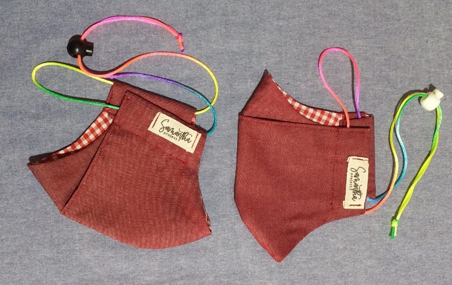 Desain masker standar ditepikan. Memang masih berbahan kain katun dan lurik, atau kombinasi keduanya, namun talinya diganti. Dari karet elastis ke tali yang dilengkapi stopper. Ternyata ada peminatnya, meski masih sebatas pelanggan, teman, dan tetangga.