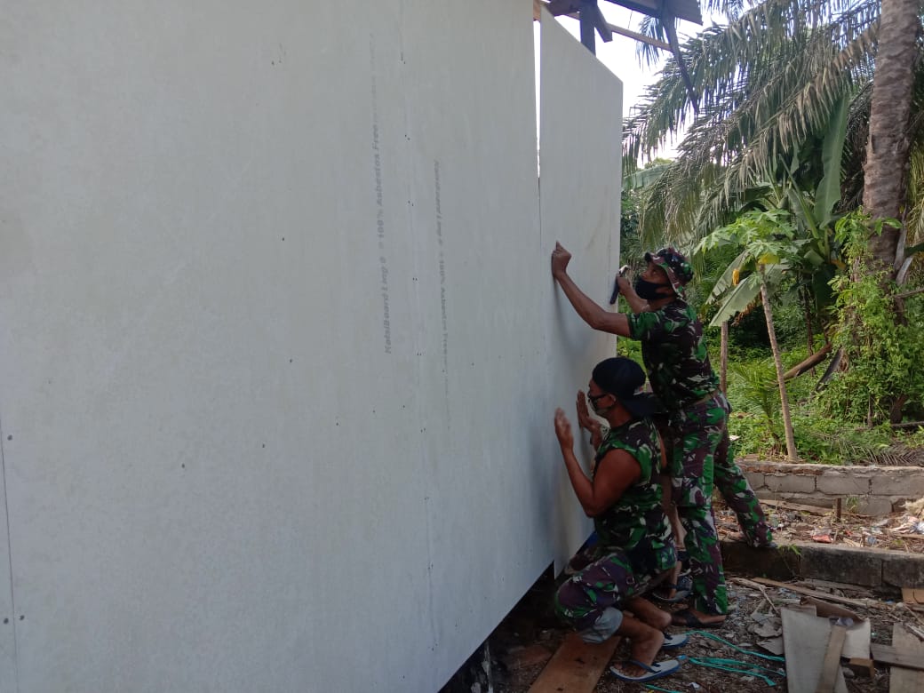 TANJUNG, Inibalikpapan.com – Pembangunan RTLH bagi warga kurang mampu merupakan salah satu kegiatan fisik program TMMD Ke-110 Kodim 1008/Tanjung di Desa Lok Batu Kecamatan Haruai. Hingga hari ke-7 pelaksanaan TMMD, pembangunan RTLH (Rumah Tidak Layak Huni) telah mencapai tahap 35 persen, dengan pemasangan dinding rumah.