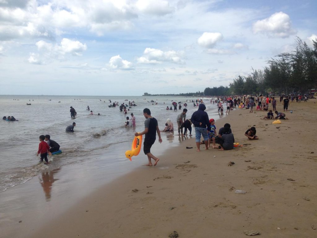 Pantai sepanjang 5 kilometer ini dipadati pengunjung yang diperkirakan lebih 12 orang. Mereka datang dari berbagai daerah di Kaltim termasuk Banjarmasim.