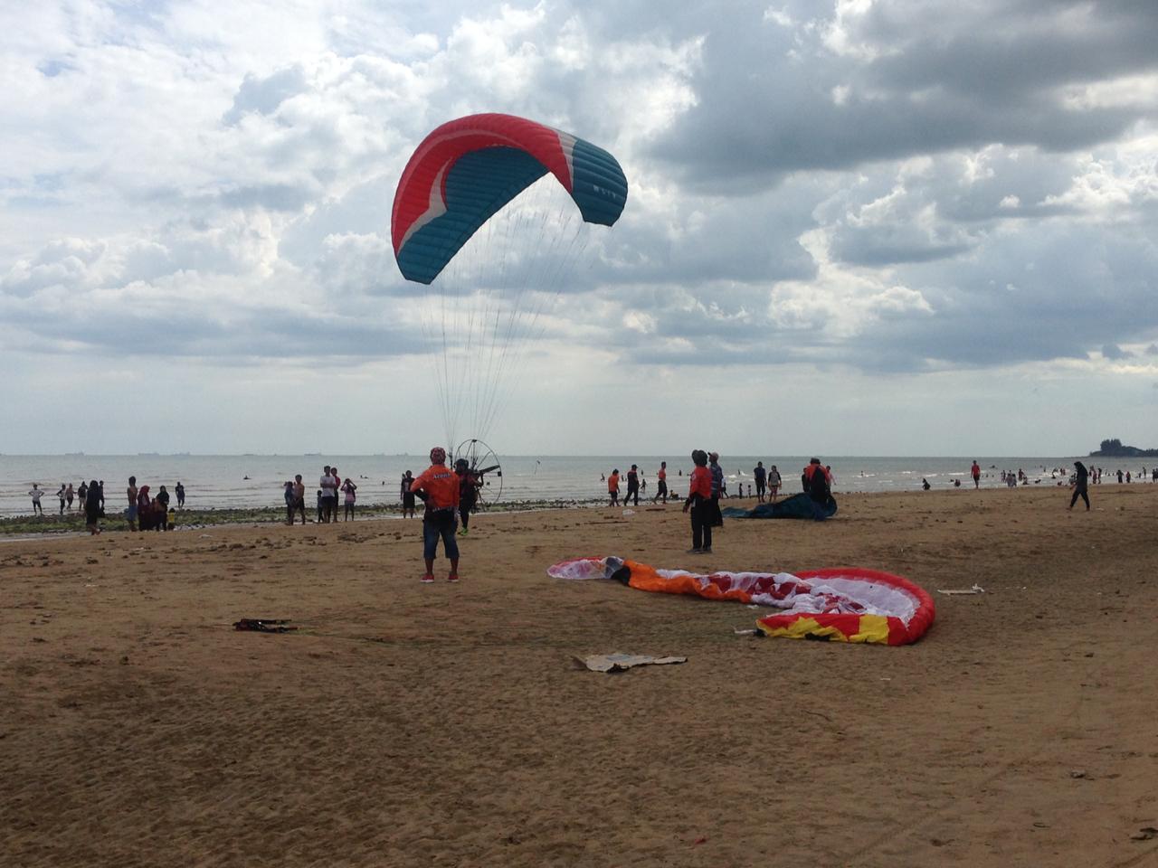 Masyarakat Penuhi Pantai Segara Sari Manggar, Disuguhkan Atraksi Paramotor