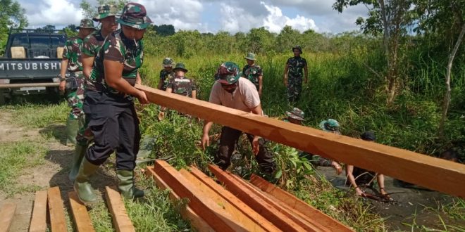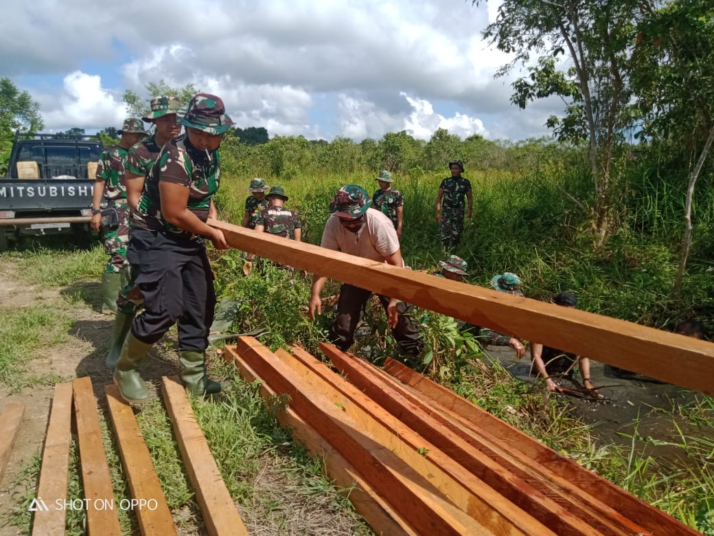 Material Kayu Telah Tiba, Satgas TMMD Ke 110 Kodim 0903/TSR Bersiap Membuat Jembatan