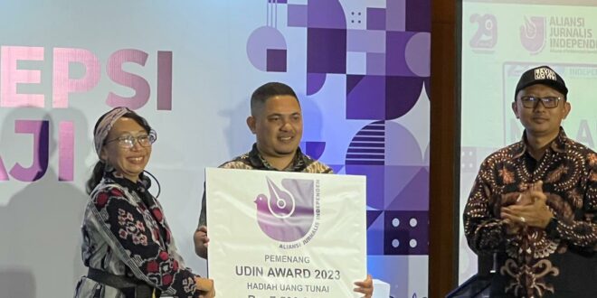 JAKARTA, Inibalikpapan.com – Aliansi Jurnalis Independen Indonesia memberikan Udin Award kepada Floresa.co, media massa lokal di Flores, Nusa Tenggara Timur (NTT) karena mengalami serangkaian teror secara bertubi-tubi yang diduga melibatkan anggota TNI setelah menulis laporan tentang proyek jalan di Labuan Bajo yang diresmikan Presiden Joko Widodo.
