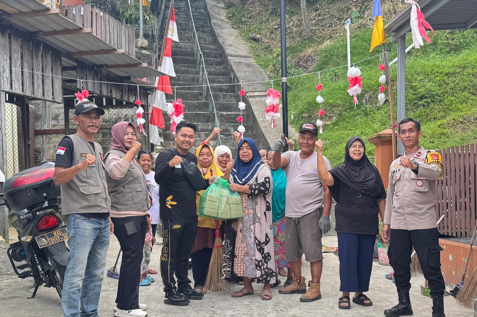 Tak hanya itu, pemasangan bendera Merah Putih, umbul-umbul, dan hiasan tematik kemerdekaan juga menjadi bagian dari persiapan. “Selain menjaga kebersihan, kegiatan ini juga bertujuan mempererat kehidupan berbangsa dan bernegara. Lingkungan yang sehat, aman, dan kondusif menjadi fondasi penting untuk menumbuhkan jiwa kebhinekaan warga agar saling bahu-membahu dalam kegiatan sosial,” ujarnya.