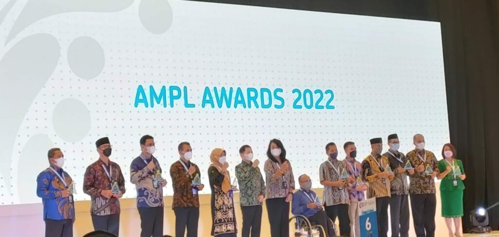 Penyerahan penghargaan AMPL Awards 2022 diberikan langsung Menteri Perencanaan Pembangunan Nasional/ Badan Perencanaan Pembangunan Nasional Republik Indonesia Suharso Manoarfa pada rangkaian acara Konferensi Sanitasi dan Air Minum Nasional (KSAN) yang dilakukan setiap dua tahun.