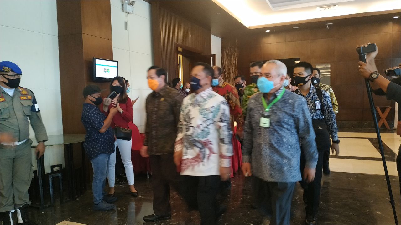 Pertemuan kunker Mendagri berlangsung terbatas dengan penerapan protokol Covid-19 sehingga peserta yang hadir termasuk media dibatasi. usai menyampaikan paparannya, mendagri langsung bertolak ke Jakarta, Sabtu siang (18/7/2020).