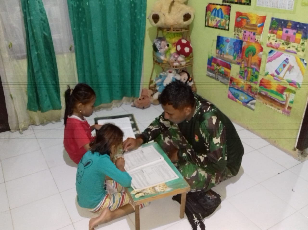 Salah satunya seperti yang dilakukan oleh Sertu Taufik dari Kodim 0907/Trk,dengan mengisi waktu senggang dimalam hari yang setiap harinya mengajari anak Pak Shaleh dirumah untuk belajar, Jumat (16/10/2020).