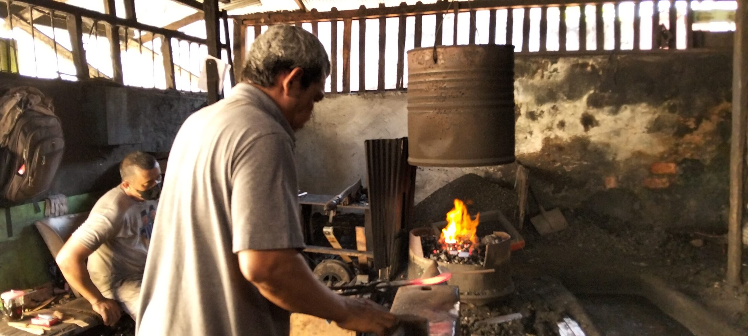 Ia menggunakan berbagai jenis bahan baku, termasuk logam bekas seperti per mobil dan bearing. “Yang paling kuat dan tajam itu bahan dari bearing, lahar mobil,” ujarnya.