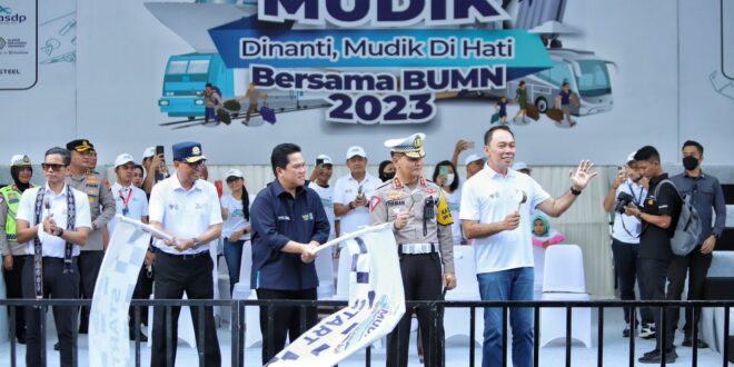 JAKARTA, Inibalikpapan.com – Menteri Badan Usaha Milik Negara (BUMN) Erick Thohir bersaa Menteri Perhubungan Budi Karya Sumadi, Wamen BUMN I Pahala Nugraha Manssury, Korlantas Polri Irjen Pol. Firman Shantyabudi, dan Direktur Utama Jasa Raharja Rivan A. Purwantono melepas 48 ribu lebih pemudik moda transportasi bus.