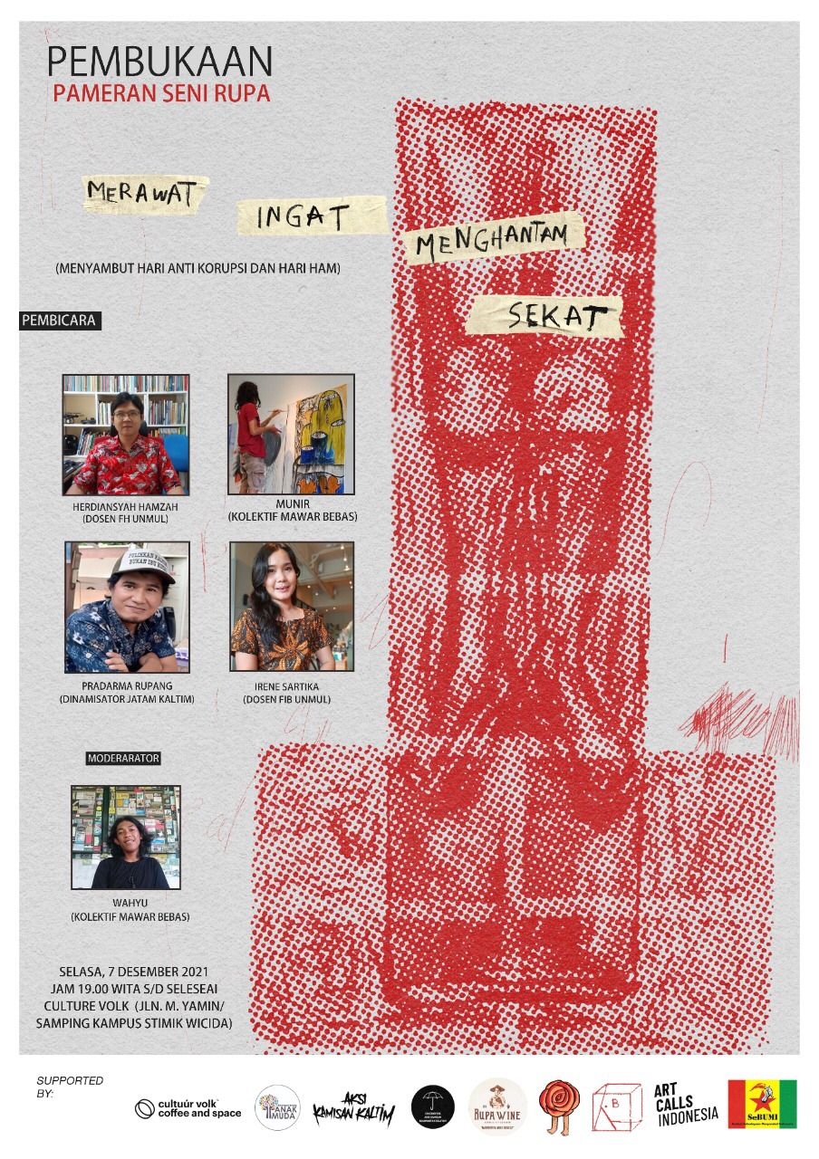 Jalinan antara Mawar Bebas, Aksi Kamisan Kaltim dan Kelompok Belajar Anak Muda {KBAM} bersama dengan kelompok dan invidu pro demokrasi lainnya akan menghadirkan agenda pameran karya yang dirangkai dengan diskusi dan aksi kreatif.