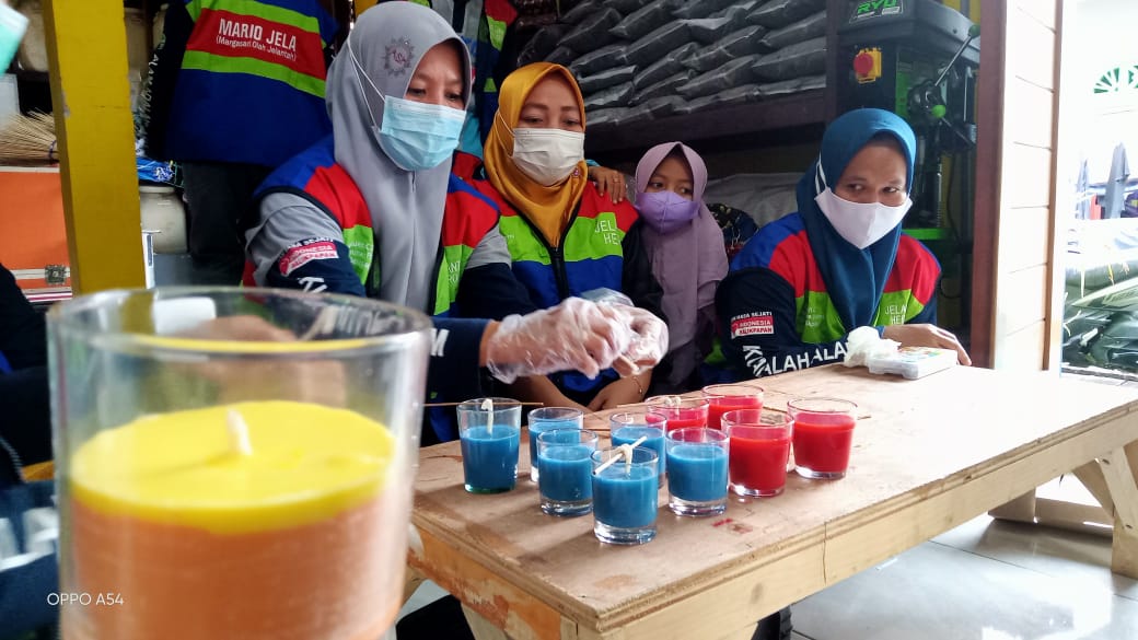 Saat kami mendatangi, ibu-ibu dengan mudah memperaktekan cara mengolah limbah minyak jelantah menjadi lilin cantik. Sekitar 20-30 menit proses pembuatannya hingga menghasilkan lilin.