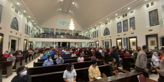 “Misa Natal dibagi dua dengan menerapkan protokol kesehatan yang ketat,” ujarnya pada Jumat (24/12/2021) petang.