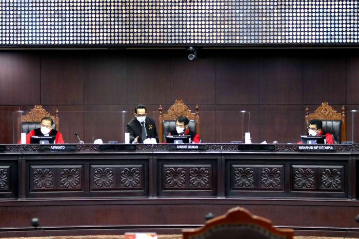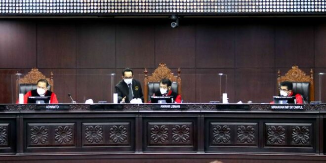“Amar putusan mengadili, menyatakan menolak permohonan para Pemohon untuk seluruhnya,” kata Ketua Pleno Anwar Usman didampingi para hakim konstitusi lainnya dalam sidang pengucapan putusan pada Selasa (25/1/2022).