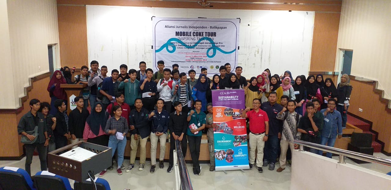 BALIKPAPAN, Inibalikpapan.com — Coca-Cola Amatil Indonesia (CCAI) berbagi inspirasi dan semangat bersama Aliansi Jurnalis Independen di 4 lokasi yakni di SMK 6 Balikpapan pada 14 November 2019 dan tiga kampus masing-masing di Politeknik Balikpapan, Institut Teknologi Kalimantan dan kunjungan berakhir di Kampus Universitas Balikpapan pada 16 November 2019.