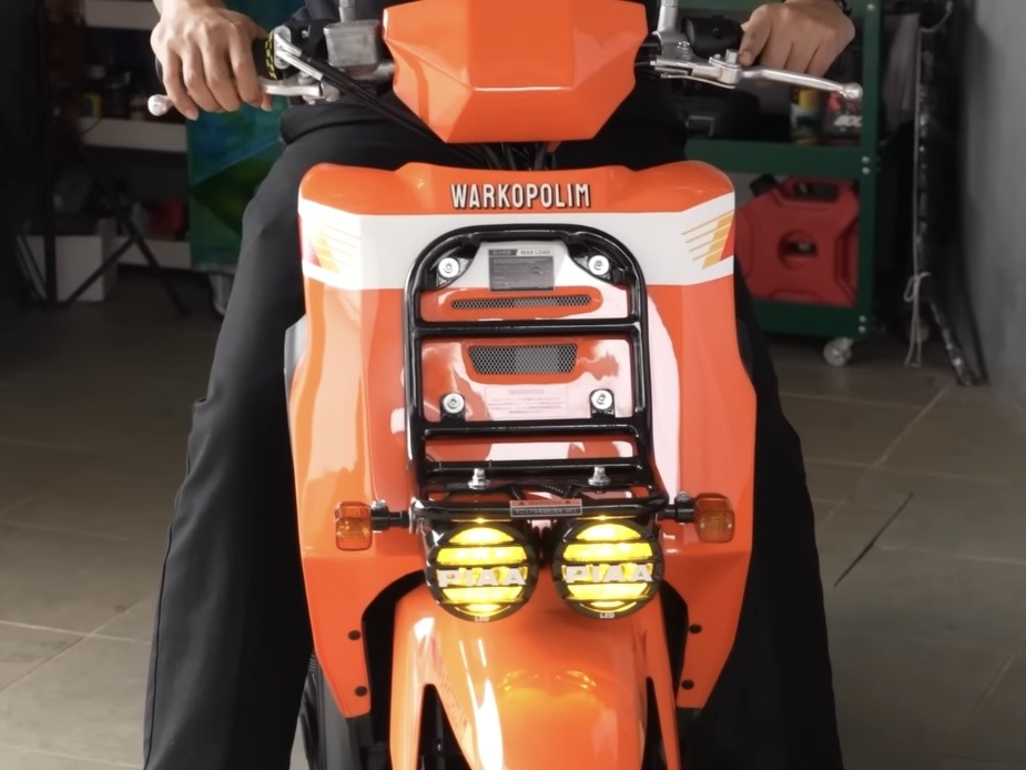 Modifikasi ini lahir dari kolaborasi Warkopolim dengan Katros Garage, salah satu bengkel modifikasi ternama di tanah air. Konsep yang diusung adalah skutik cargo, terinspirasi dari Yamaha GEAR edisi Jepang. Jadi, motor ini memiliki rak depan plus rak belakang untuk bawa box tambahan—cocok banget buat kendaraan operasional.