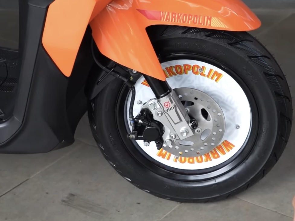 Velg putih dengan grafis logo Warkopolim bikin motor ini makin standout di jalanan.