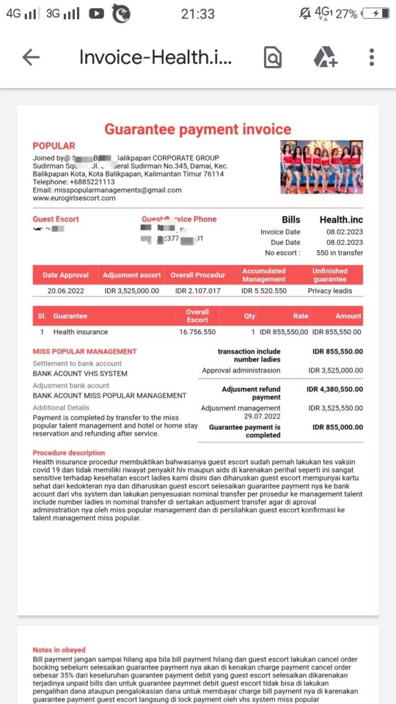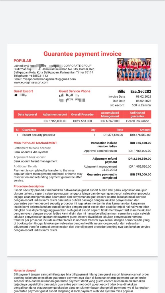 Tak berselang lama terjadilah percakapan antara pewarta dengan penanggung jawab melalui sambungan telpon, disini tingkat kecurigaan semakin meningkat, dikala penanggung jawab agensi kita sebut saja Andre meminta uang jaminan dengan alasan jaminan untuk kesehatan dan keselamatan ladiesnya.