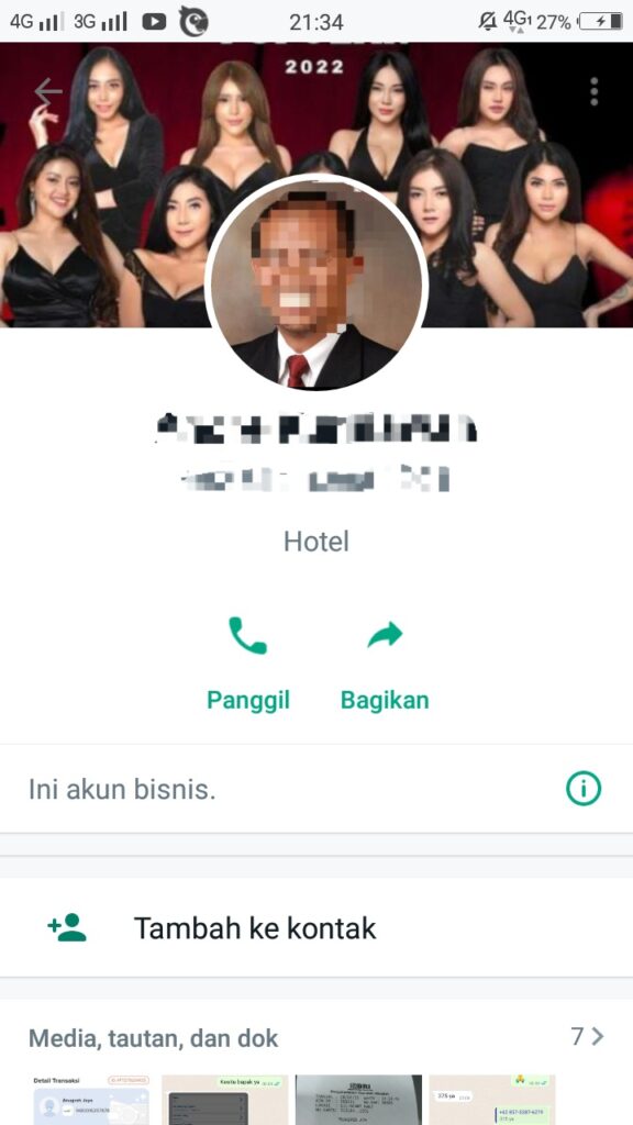Pewarta kembali diminta untuk menghubungi seseorang yang menjadi penanggung jawab agensi penyedia jasa ladies-ladies penghibur melalui aplikasi hijau ini.