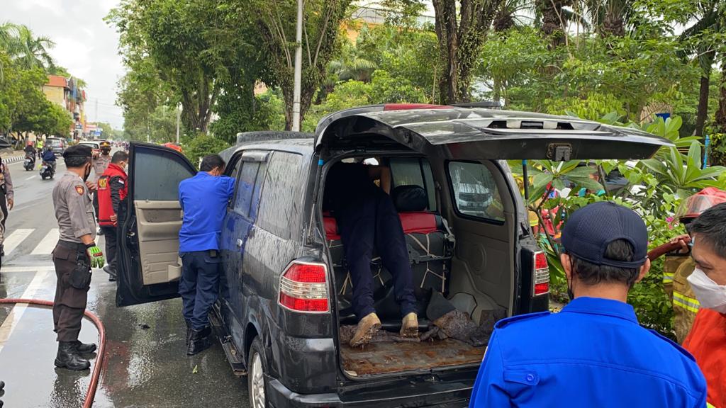 BALIKPAPAN, Inibalikpapan.com— Satu unit mobil APV mengeluarkan asap tebal di jalan Jenderal Sudirman, tepat di depan Bekapai Balikpapan pada pukul 09.10 wita, Kamis (29/7/2021).