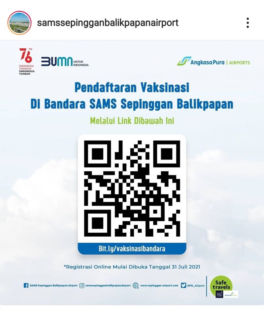 Mulai 31 Juli Pendaftaran Vaksinasi di Bandara Sepinggan Bagi Pelaku Perjalanan Melalui Online
