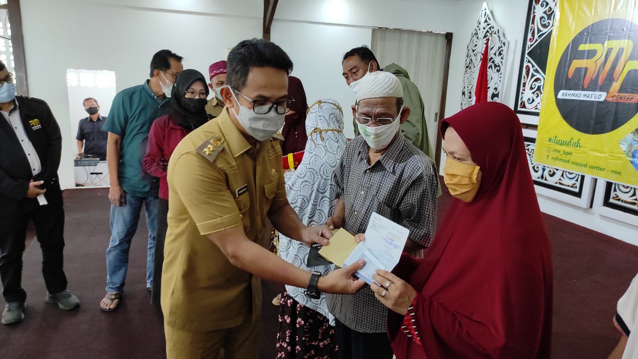 Penyerahan kartu ATM dan buku secara simbolis dilakukan pembina RMC Rahmad Mas’ud kepada perwakilan warga penerima zakat, di aula rumah jabatan Wakil Walikota Balikpapan, Selasa siang (04/05/2021).