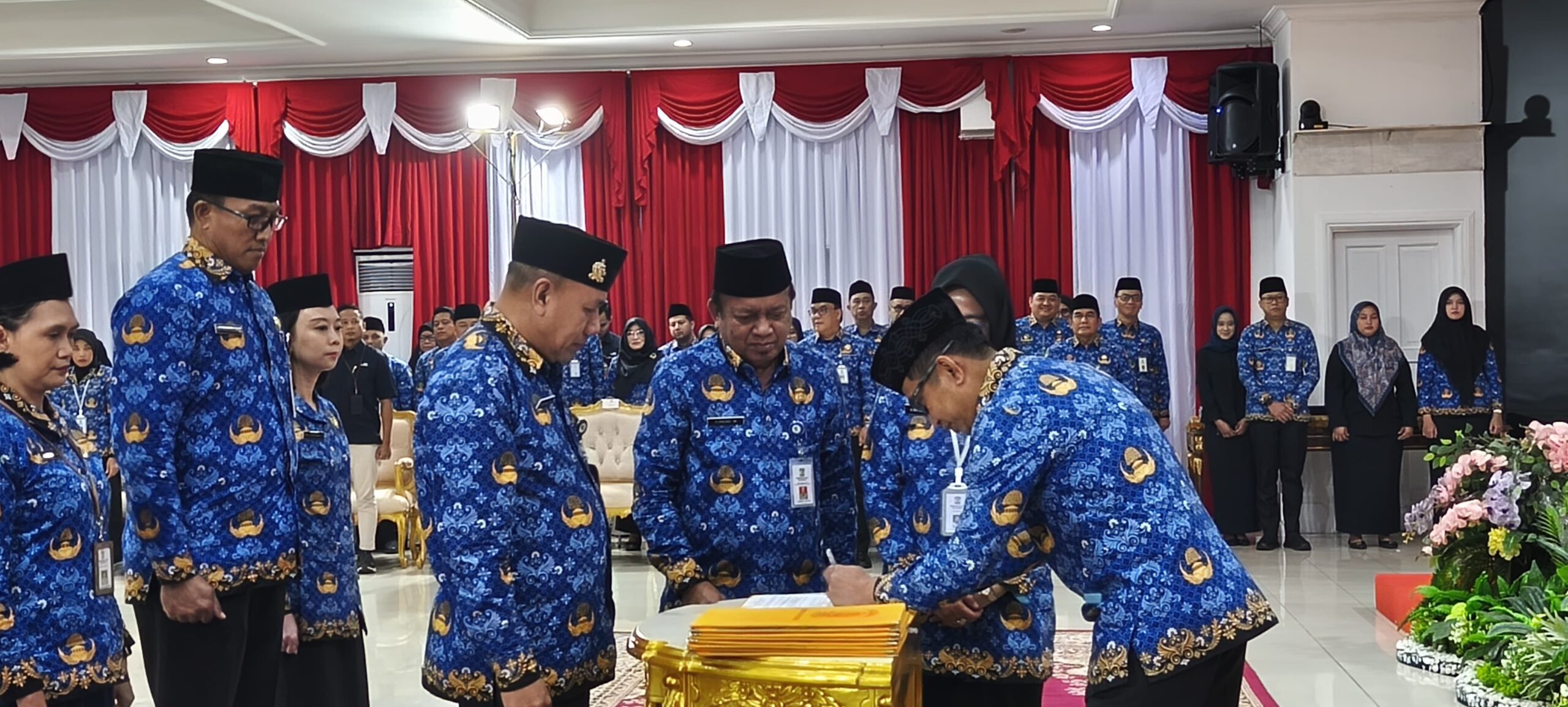 Wali kota Rahmad Rahmad Mas’ud melakukan pelantikan dan mutasi kepda 89 pejabat administrator, pengawas, dan kepala puskesmas di lingkungan di pemerintahan kota, Selasa (21/10/2025). Pelantikan dihadiri Wakil Wali Kota Balikpapan, Sekda, para Asisten dan Staf Ahli dan seluruh kepala OPD, camat, kepala bagian.