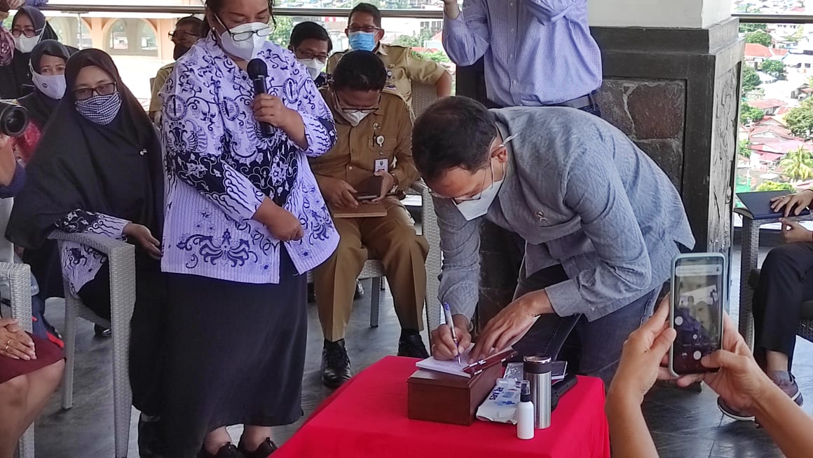 Karena satu yang menjadi cita-citanya menjadi guru, melahirkan siswa yang berprestasi dan majunya dunia pendidikan. “Kami hanya bisa memberikan sebuah buku ini, mudah-mudahan bapak bekernan, ini mungkin tidak ada artinya,” ujarnya langsung diterima buku itu dan ditandatanganinya.