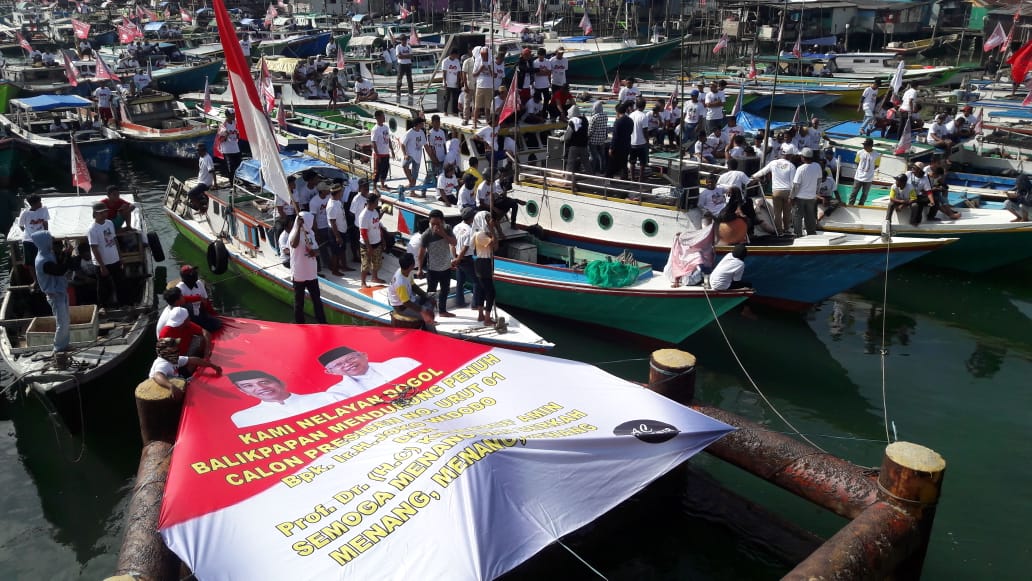 Dukungan akan disampaikan di atas kapal nelayan dan disaksikan oleh Jokowi dari atas jembatan manggar.