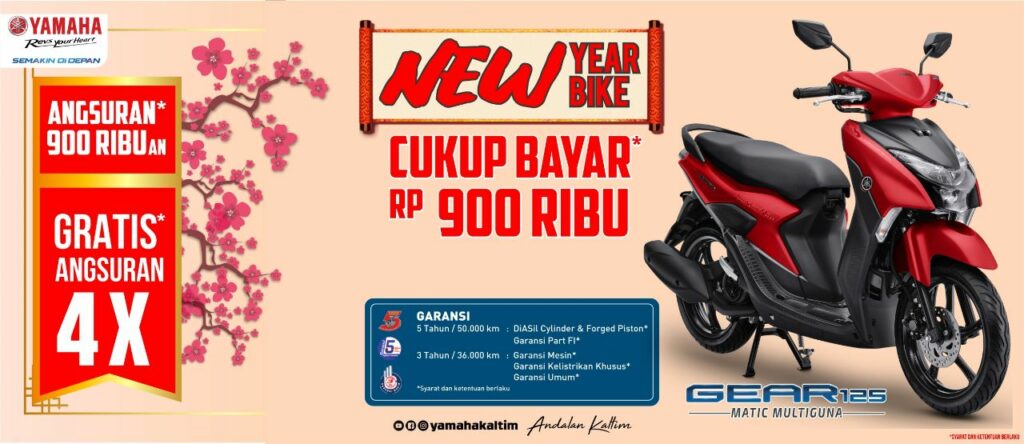PT. Surya Timur Sakti Jatim (STSJ) selaku main dealer Yamaha di Kaltimtara di awal tahun 2023 ini menggeber promo bertajuk New Year Bike 2023, Cukup Bayar Rp 900 Ribu” kalian udah bisa membawa pulang sepeda motor impian, matik serbaguna Yamaha Gear 125.