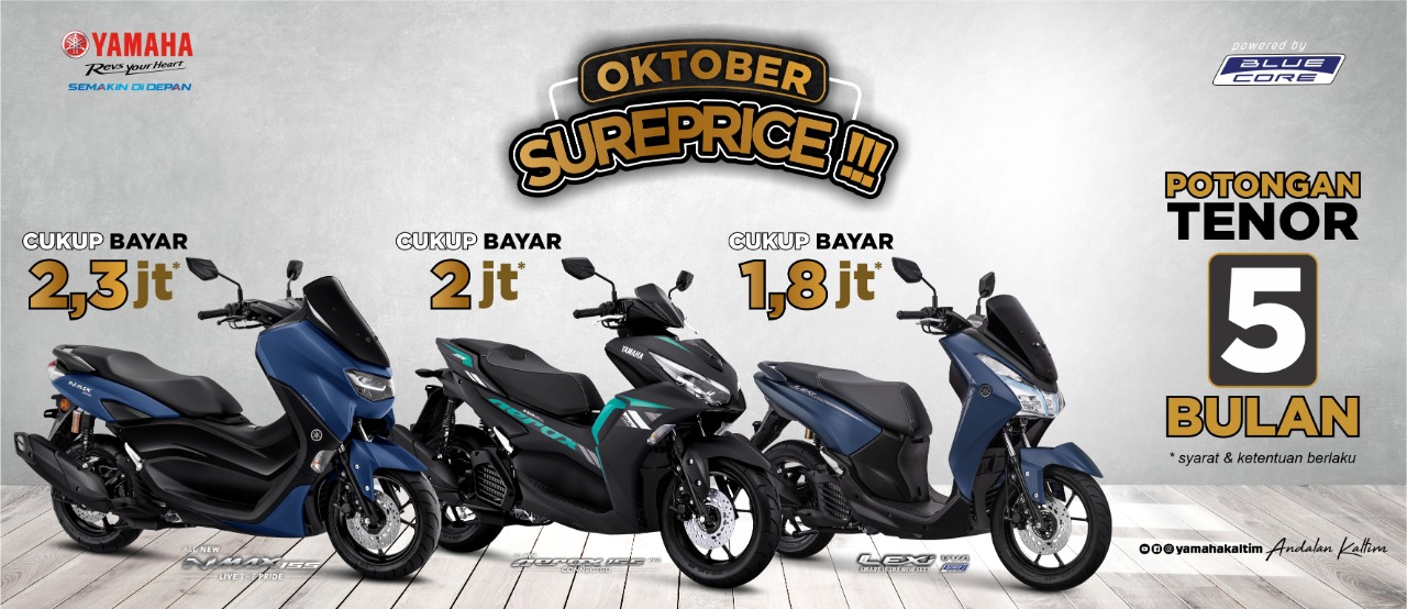 Paket program Sureprice Oktober 2021 ini seperti diterangkan Asisten Manajer PT. Surya Timur Sakti Jatim (STSJ) Area Kaltim, Efendy Ariyadi, Yamaha memang selalu berusaha memberi yang terbaik dan tentunya bagaimana memanjakan konsumen setianya untuk dapat memiliki sepeda motor Yamaha dengan harga terjangkau.