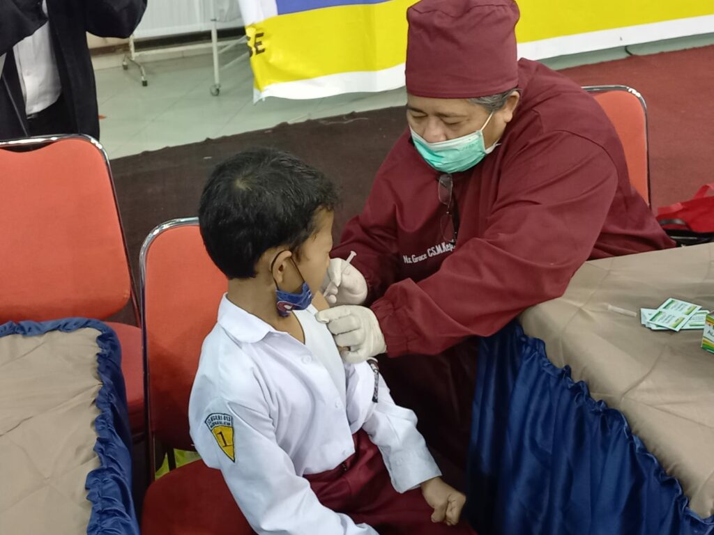 Dalam vaksinasi anak usia 6-11 tahun ini, terdapat satu siswa yang sempat tertunda vaksinasi karena tensi si anak mencapai 140′. Si anak juga terlihat tegang sehingga orang tua diminta untuk menenangkan dan dibuat gembira.