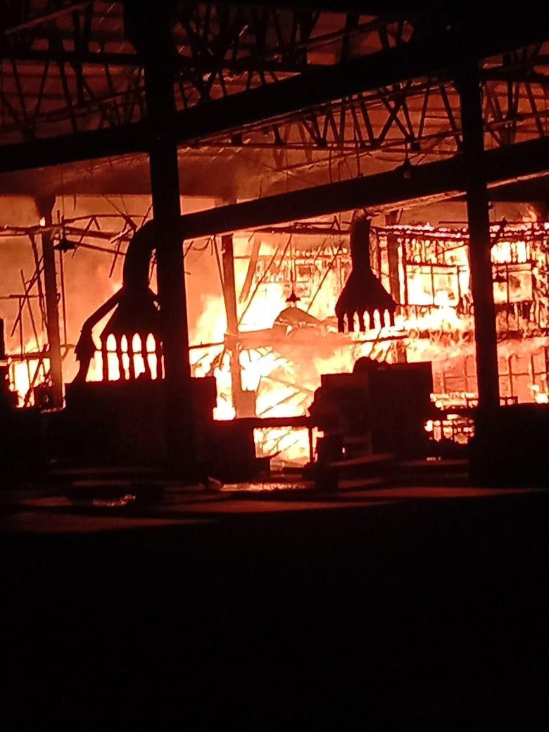 Tak hanya menghabiskan plywood, api juga sempat menyambar sebuah tabung oksigen. Akibatnya, sempat terjadi bunyi ledakan di lokasi kebakaran.