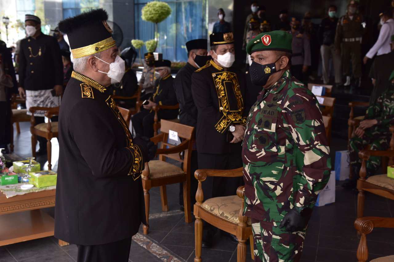 SAMARINDA, inibalikpapan.com -Pangdam VI/Mulawarman Mayjen TNI Heri Wiranto, S.E., M.M., M.Tr. (Han) menghadiri upacara peringatan Hari Ulang Tahun Pemerintah Daerah Provinsi Kalimantan Timur ke-64 yang berlangsung di halaman kantor Pemprov Kaltim, Sabtu (9/1/2021).