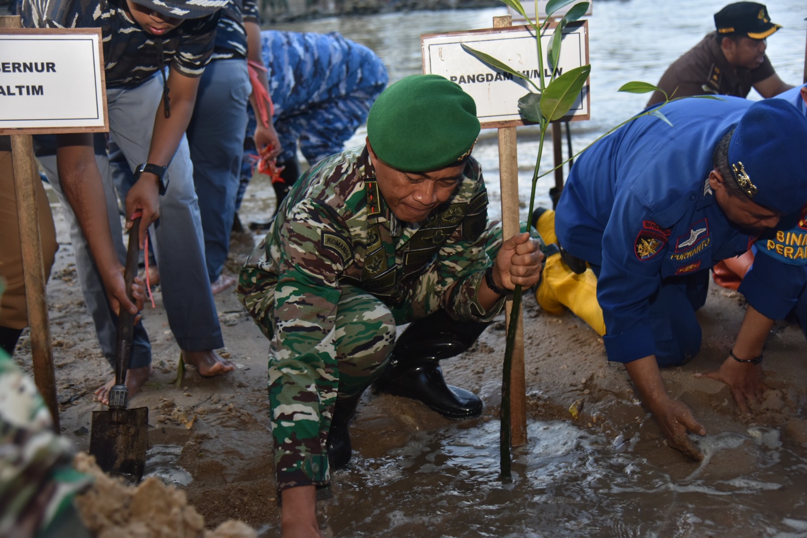 Upaya pemulihan lingkungan melalui rehabilitasi mangrove ini menjadi agenda utama Bapak Presiden dan seluruh Jajaran TNI, sekaligus upaya untuk mengurangi emisi.