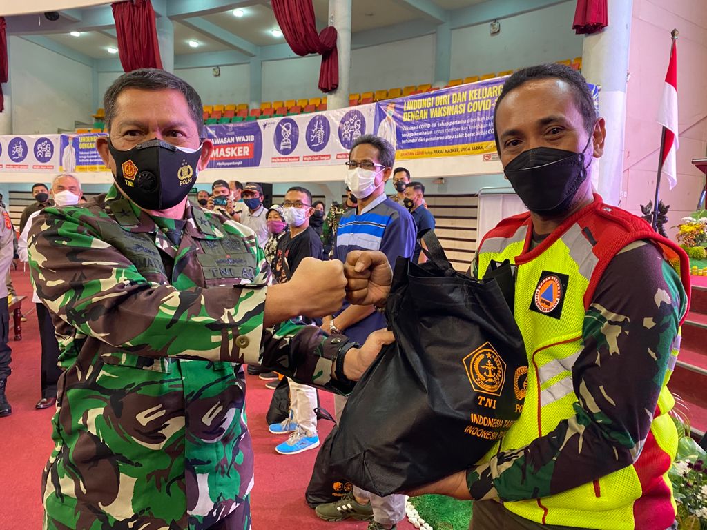 BALIKPAPAN, Inibalikpapan.com – Kodam VI Mulawarman menggelar vaksinasi massal dan bakti sosial pembagian sembako di gedung BSSC Dome Balikpapan pada Rabu (13/10/2021).