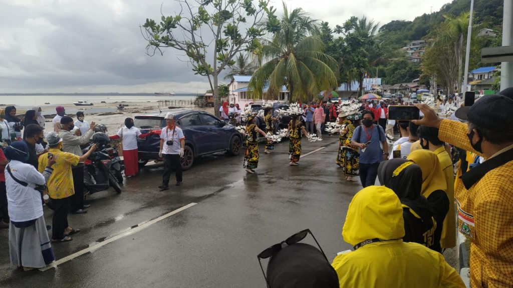 RM-TA tiba di kantor KPU sekitar pukul 14.50 wita disambut tarian selamat datang dan salawat Badar. Kemudian melakukan cuci tangan, pemeriksaan suhu dari tamu undangan.