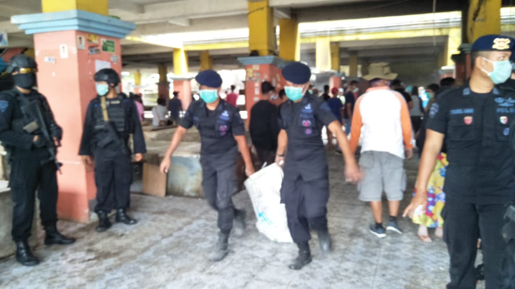 Pasca Kerusuhan, Brimob Kaltim Ikut Bantu Bersihkan Pasar Tamburani Fakfak
