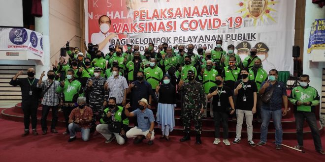 BALIKPAPAN,Inibalikpapa.com — Menjadi salah satu pekerjaan yang memiliki kontak langsung dengan masyarakat banyak membuat para mitra driver Gojek di Balikpapan mendapat kesempatan untuk mengikuti vaksinasi Covid-19 di Balikpapan Sport and Covention Center (BSCC) Dome, Sabtu (27/3/2021).