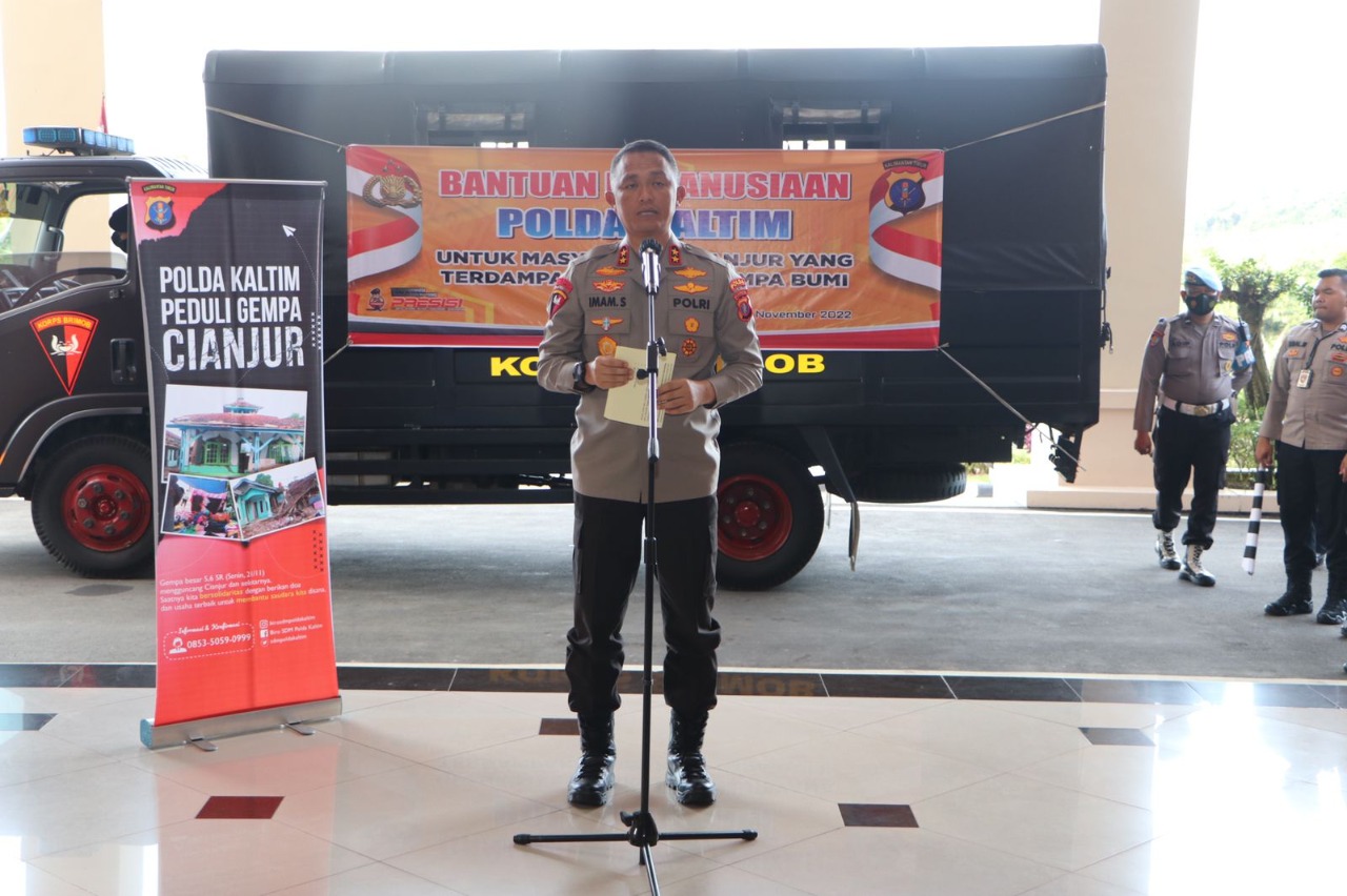 Peduli Korban Gempa di Cianjur, Kapolda Kaltim Lepas Penyerahan Bantuan Kemanusiaan