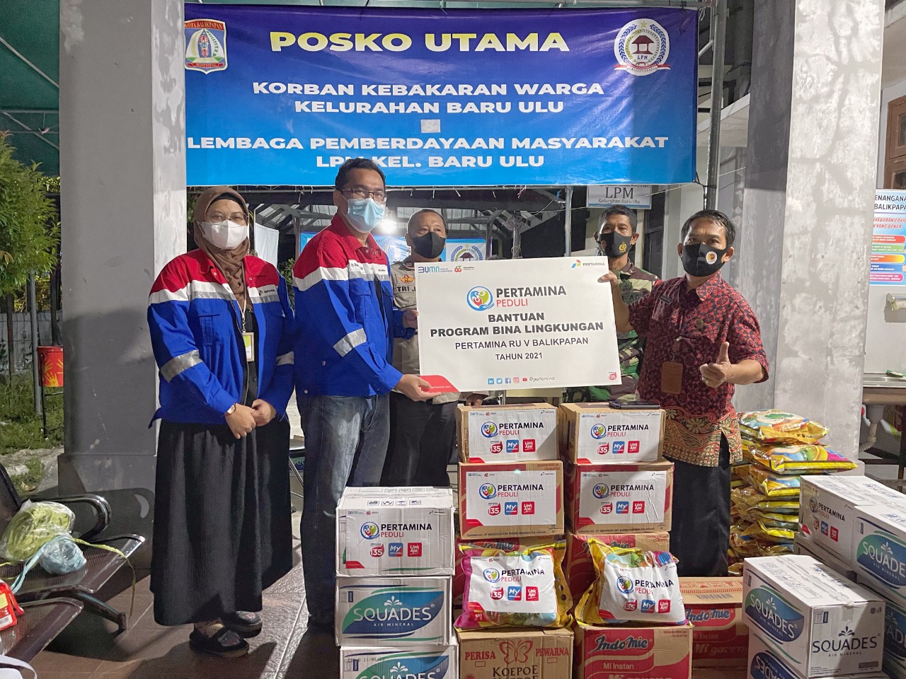 Pertamina RU Balikpapan kembali menunjukkan kepeduliannya dengan memberikan bantuan kepada korban bencana. Penyerahan bantuan dilakukan di Posko Kantor Kelurahan Baru Ulu.