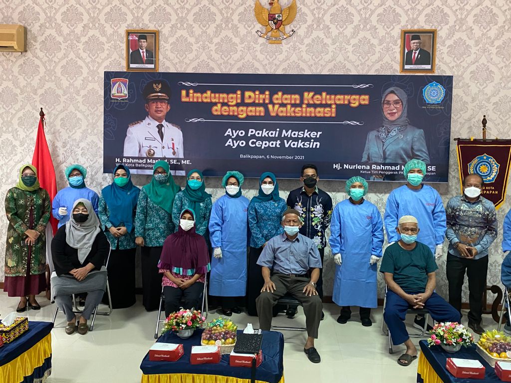 BALIKPAPAN,Inibalikpapan.com — Dengan mengangat tema Lindungi Diri dan Keluarga dengan vaksinasi, Tim Penggerak Pemberdayaan Kesejahteraan Keluarga (TP-PKK) Kota Balikpapan melaksanakan kegiatan vaksinasi yang dipusatkan di Kantor TP-PKK Jalan Ruhui Rahayu II, Balikpapan Selatan pada Sabtu (6/11/2021).