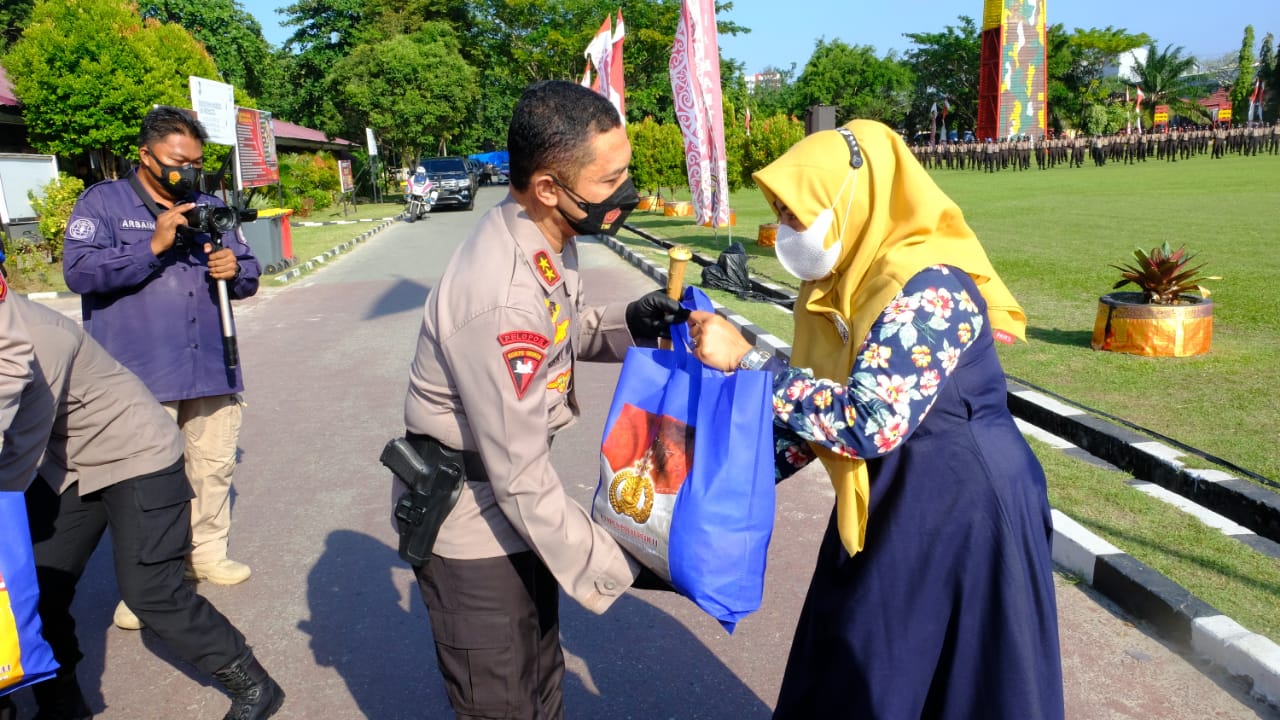 Peduli Sesama, SPN Polda Kaltim Bagikan Ratusan Paket Sembako Ke Masyarakat Kurang Mampu