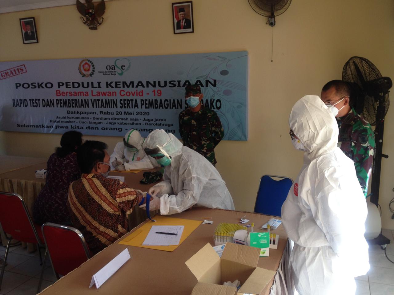 BALIKPAPAN, Inibalikpapan. com —Dharma Pertiwi bekerjasama dengan Kodim 0905 Balikpapan dan Kodim 0905 Balikpapan serta Artha Graha menggelar rapid test massal di tiga pasar yakni K landasan Ulu, Muara Rapak dan Pandan Sari, Rabu (20/5/2020).